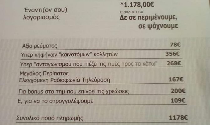 Λέει ο Μητσοτάκης για σοβαρές μειώσεις στο ρεύμα. Κάπου στο 0,03 με 0, 04 %… ΣΩΤΗΡΑΣ ΒΡΕΕΕΕ..εννέα στους δέκα πολίτες που ανοίγουν τον λογαριασμό της ΔΕΗθώμεν ξεσπούν σε χειροκροτήματα.