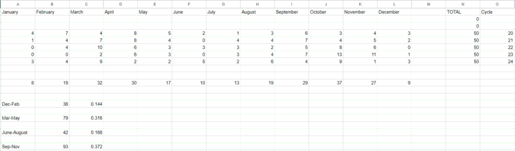 Έχοντας αναλύσει όλα τα σημαντικά γεωμαγνητικά γεγονότα από το 1964, κατέληξε στο συμπέρασμα ότι η πιθανότητα τέτοιων γεγονότων χειμώνα και καλοκαίρι είναι 15%, την άνοιξη 30% και το φθινόπωρο έως και 37%.