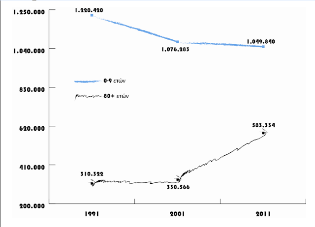 Ο αριθμός των γεννήσεων συνεχίζει να μειώνεται, με δείκτη ολικής γονιμότητας 1,33 (προβλεπόμενος μέσος αριθμός παιδιών ανά γυναίκα), δημιουργώντας ένα πολύ μεγάλο ποσοστό υπέργηρου πληθυσμού (Γράφημα 4).