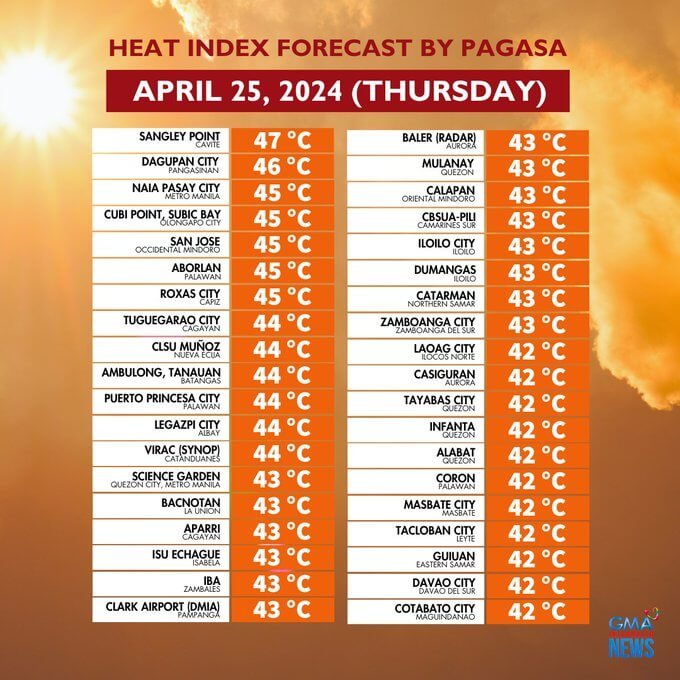 «Κάνει τόσο ζέστη που δεν μπορείς να αναπνεύσεις», είπε ο Έρλιν Τουμαρόν, 60 ετών, που εργάζεται σε ένα παραλιακό θέρετρο των Φιλιππίνων στην επαρχία Κάβιτε, νότια της Μανίλα, όπου ο δείκτης θερμότητας έφτασε τους 47 βαθμούς Κελσίου (117 βαθμούς Φαρενάιτ) την Τρίτη.