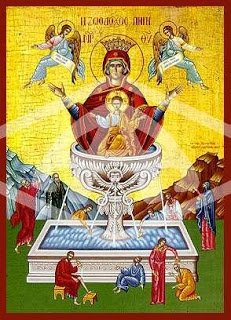 Η παραπανω εικονα που απεικονιζει τη Ζωοδοχο πηγη, μεταφραζεται ως η πηγη που δίνει ζωή.