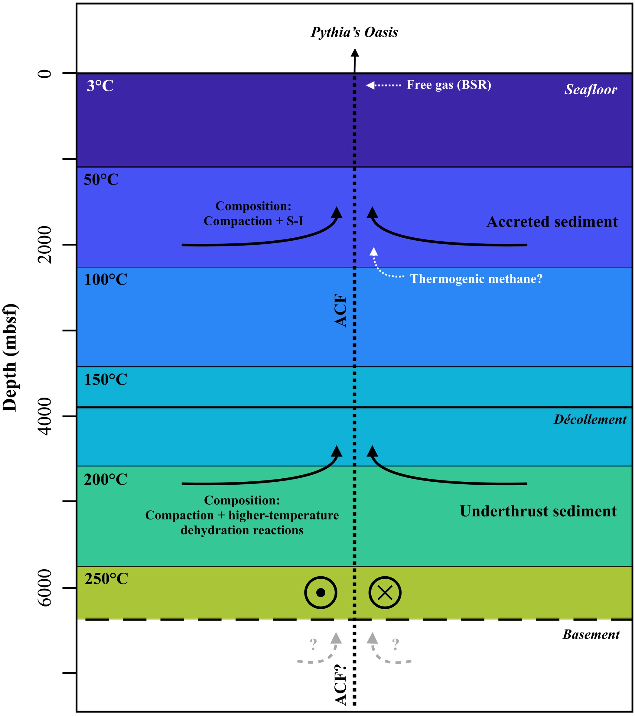 “Η Όαση της Πυθίας είναι μια πρόσφατα ανακαλυφθείσα διαρροή στον πυθμένα στο τμήμα του Κεντρικού Oregon της ζώνης υποβύθισης Cascadia, όπου η εστιασμένη εκτόνωση εκπέμπει εξαιρετικά τροποποιημένα ρευστά ~9°C πάνω από τη θερμοκρασία υποβάθρου.