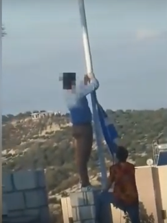 Στο βίντεο που τράβηξε ανυποψίαστος πολίτης, καθώς δεν γνώριζε αρχικά περί τίνος πρόκειται (νόμιζε πως θα γίνει αλλαγή της σημαίας λόγω φθοράς) φαίνονται καθαρά τα πρόσωπα τους αλλά και ο αριθμός πινακίδας του οχήματος.