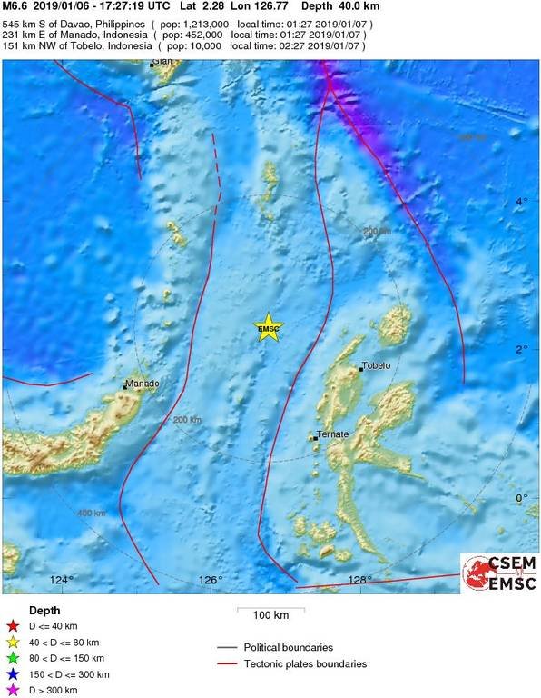 Η σεισμική δόνηση έπληξε την περιοχή 174 χιλιόμετρα βόρεια-βορειοδυτικά της πόλης Τερνάτε στις νήσους Μολούκες της Ινδονησίας, σύμφωνα με το Αμερικανικό Γεωλογικό Ινστιτούτο.