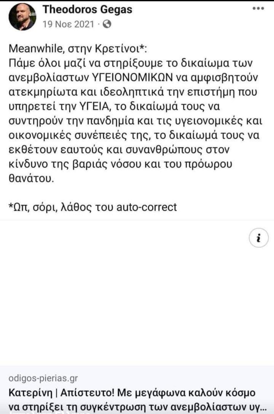 Διαβάσατε κύριοι και κυρίες της Υποχρεωτικής Υγείας τι δηλώσεις έκανε ο ειδικός κύριος Γκέγκας;;; Αυτός που σας έκανε διαφήμηση τον υποχρεωτικό ΘΑΝΑΤΟ, ναι αυτός που ονόμαζε τους νόες, κρετίνους.