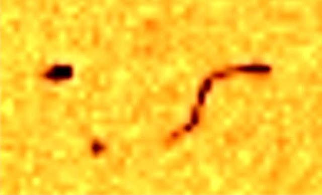 Πάντως, κάπου εδώ αξίζει να σημειωθεί πως ένα οφιοειδές αντικείμενο εμφανίστηκε σε ζωντανή μετάδοση της NASA την ακριβώς επόμενη μέρα από το αντικείμενο που κατέγραψε το SOHO και φαίνεται να κάνει ελιγμούς, δηλαδή στις 26/9.