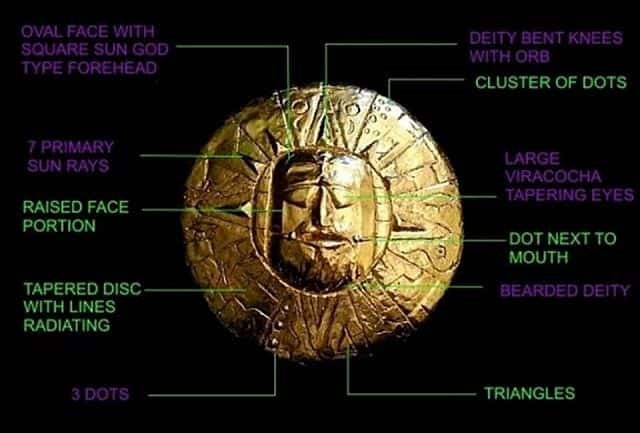 Επιπλέον, ο χρυσός δίσκος έχει ως εικόνα τον θεό των αστεριών, τον Viracocha. Παράλληλα έχει και τους θεούς του νερού και της θάλασσας, Mamachocha και Pachamama, αντίστοιχα. Ο χάρτης είναι ουσιαστικά το κλειδί για να καταλάβουμε ότι δεν είμαστε μόνοι μας στο σύμπαν