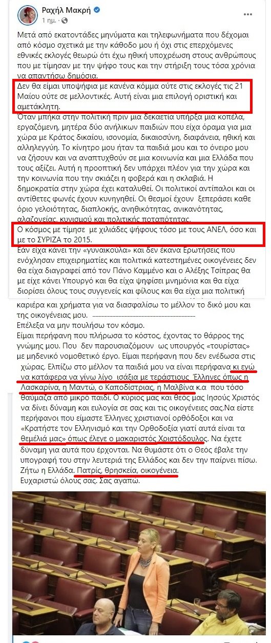 Σίγουρα κάποιος θά μέ ρωτήσῃ,τί θέλω κι᾿ἀσχολοῦμαι μέ τήν κυρία Ῥαχήλ. Θ᾿ἀπαντήσω :Διότι μέ νευριάζει νά βλέπω δημόσια πρόσωπα,νά αὐτοαποκαλοῦνται “πατριῶτες” καί νά μήν ἀφήνουν τούς ἄλλους νά τούς ἀναγνωρίζουν τήν ἰδιότητα. Στήν συγκεκριμένη οἱ περιπτώσεις πού θά μποροῦσαν νά τῆς κάνουν τήν τιμή ἀναγνωρίσεως τῆς πατριοφροσύνη τους,οὐκ ὀλίγες.Ὅμως …