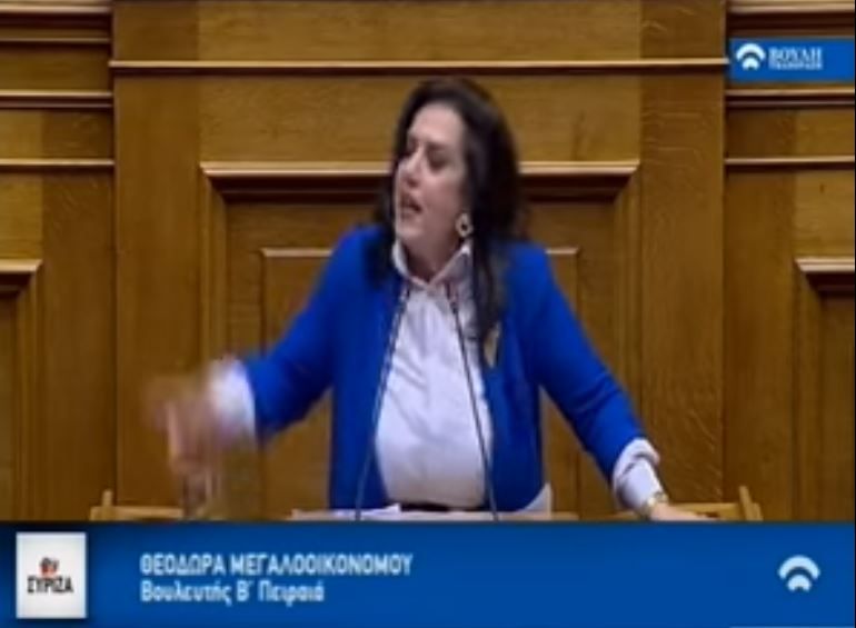 «Προσπαθώ με τα τέρατα να τα βγάλω πέρα, είμαι στο λάκκο με τα φίδια. Αισθάνομαι απογοητευμένη… Η ΝΔ έχει στους κόλπους της βουλευτές σεξιστές όπως ο Γιακουμάτος και ο Οικονόμου… Ήταν θράσος της Γεννηματά να ονομάσει τον Τσίπρα «νεοκομμουνιστή». Απορώ πως το δέχθηκε το ΚΚΕ. Ξεφτιλίσατε το ΚΚΕ που πολέμησε στην εθνική αντίσταση ενώ εσείς όλοι οι δεξιοί φοράγατε κουκούλες… δοσίλογοι » είπε μεταξύ άλλων στην Βουλή, χθες το βράδυ η μεταγραφή του ΣΥΡΙΖΑ, βουλευτίνα- ο Θεός να την κάνει-Μεγαλοοικονόμου. Σε τι διαφέρει αυτη η κυράτσα από την κυρία Λουκά;