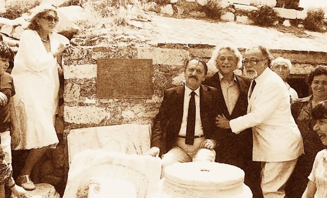 Μελίνα Μερκούρη, Λάκης Σάντας, Μανώλης Γλέζος, Μανόλης Ανδρόνικος στην Ακρόπολη.