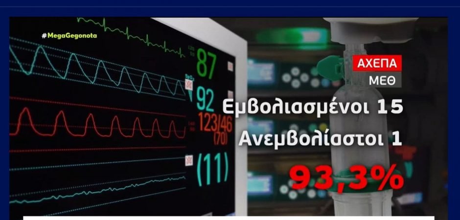 MEGA! «ΤΟ 93,3% στην ΜΕΘ του ΑΧΕΠΑ είναι ΕΜΒΟΛΙΑΣΜΕΝΟΙ…» ΚΑΙ ΣΥΝΕΧΙΖΟΥΝ ΚΑΘΗΜΕΡΙΝΑ ΝΑ ΣΑΣ ΔΟΛΟΦΟΝΟΥΝ