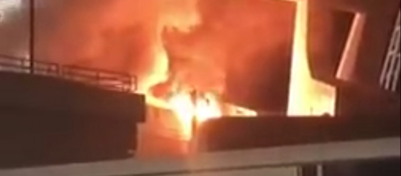 Η φωτιά ξέσπασε υπό αδιευκρίνιστες συνθήκες, έξω από το πέταλο που φιλοξένησε τους οπαδούς του ΠΑΟΚ και ευτυχώς σβήστηκε με την έγκαιρη επέμβαση της πυροσβεστικής.