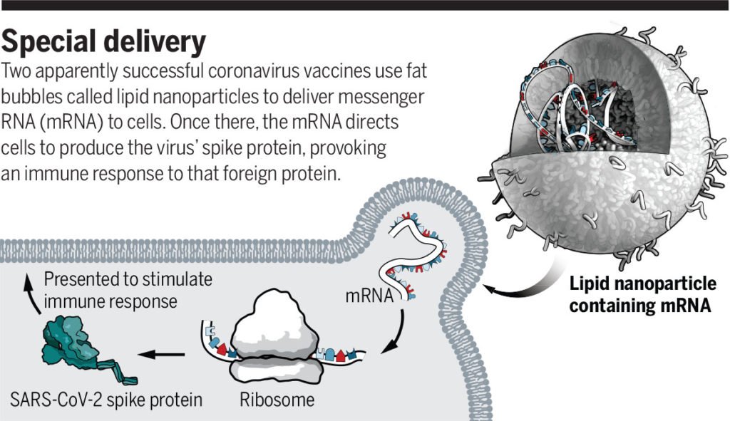 Οι συγγραφείς παραθέτουν την υπάρχουσα βιβλιογραφία που δείχνει ότι το τροποποιημένο mRNA, συσκευασμένο σε λεγόμενα λιπιδικά νανοσωματίδια, μπορεί να εξαπλωθεί ευρύτερα σε όλο το σώμα από ό,τι αρχικά υποτίθεται.
