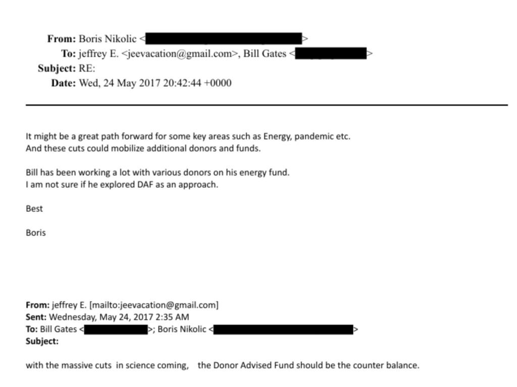 Ένα βασικό στοιχείο είναι ο ρόλος του Epstein ως συμβούλου στη δημιουργία χρηματοοικονομικών δομών που συνδέονται με φιλανθρωπία που σχετίζεται με τον Gates. Εσωτερικά email από το 2011 δείχνουν ότι ο Epstein συμμετείχε σε συζητήσεις με ανώτερα στελέχη της JPMorgan Asset Management. Σε αυτήν την αλληλογραφία, προέτρεψε να δοθεί ρητή προσοχή στη χρηματοδότηση εμβολίων και στη δημιουργία μιας υπεράκτιας δομής, ειδικά επικεντρωμένης στα εμβόλια.