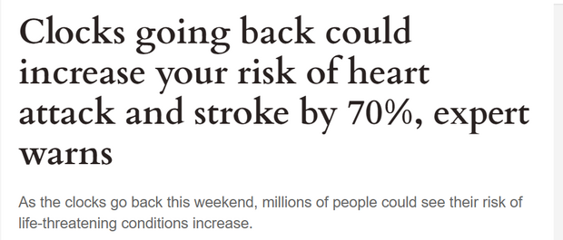 Και από αύριο όταν ο χρόνος πάει μια ώρα πίσω, έτσι μας είπαν, ένα 70% πάει στον άλλο κόσμο.