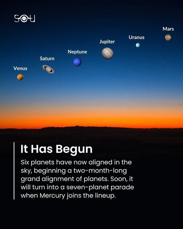 Όπου αυτή τη στιγμή υπάρχουν έξι πλανήτες στη σειρά, δεν θα υπάρχουν λιγότεροι από επτά μέχρι τα τέλη Φεβρουαρίου, όταν θα προστεθεί και ο Ερμής.