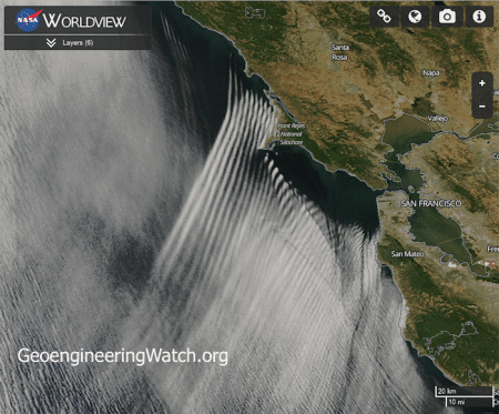 Οι φωτογραφίες που φαίνονται παρακάτω έχουν ληφθεί από δορυφορικές πηγές της NASA και είναι πραγματικά ανησυχητικές. Αυτές οι εικόνες δείχνουν την συγκλονιστική και αναμφισβήτητη απόδειξη της συνεχιζόμενης επίθεσης παγκόσμιας μηχανικής κλίματος / γεωμηχανικής / διαχείρισης ηλιακής ακτινοβολίας στον πλανήτη μας και στα οικολογικά συστήματα ζωής.
