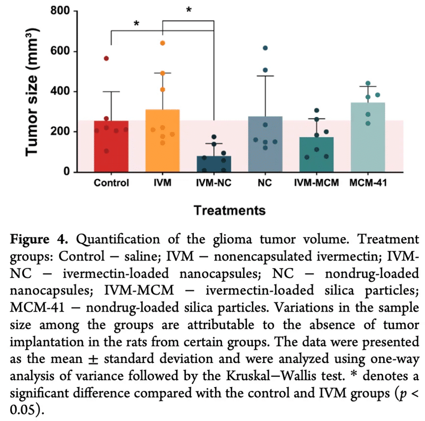 Αυτή είναι η πρώτη in vivo επίδειξη ότι η ιβερμεκτίνη, όταν συνταγογραφείται και χορηγείται σωστά, μπορεί να καταστείλει δραματικά την ανάπτυξη του γλοιοβλαστώματος σε δόσεις πολύ κάτω από τα τυπικά αντιπαρασιτικά επίπεδα.