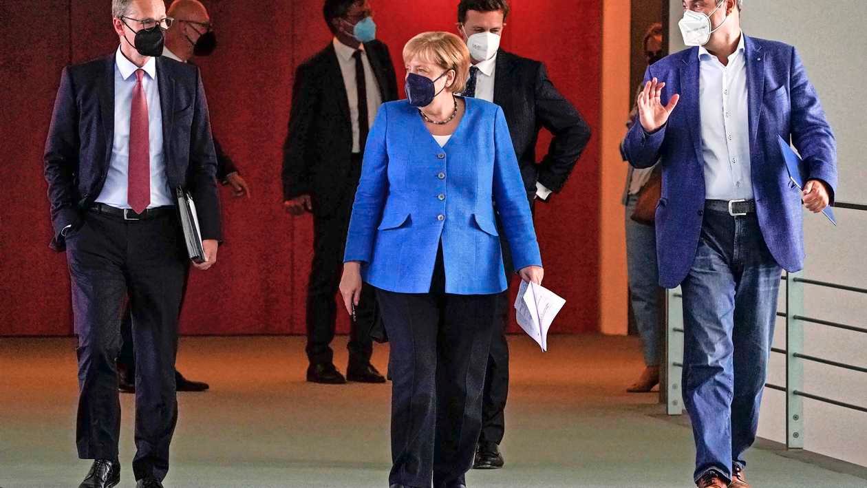 Εικόνα: οι ΝΕΟΝΑΖΙ, Μέρκελ, ο Μίλερ και ο Σόντερ φτάνουν με μάσκες στη συνέντευξη Τύπου για τα νέα μέτρα για τον κορωνοϊό.