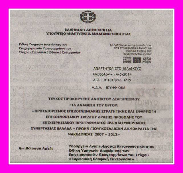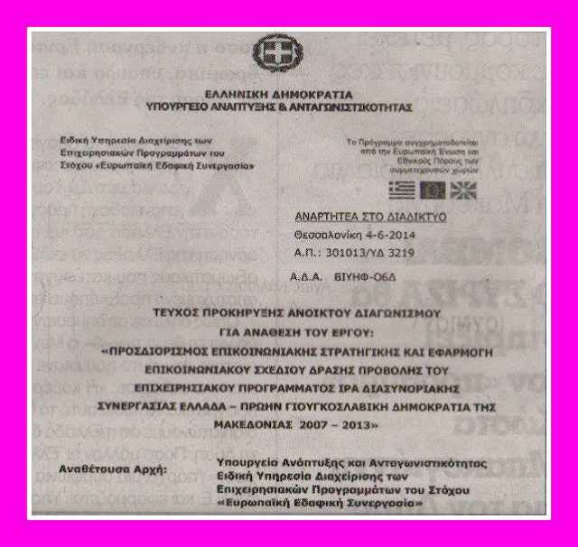 Το πρόγραμμα ονομάζεται << ΠΡΟΓΡΑΜΜΑ ΕΥΡΩΠΑΪΚΗΣ ΔΙΑΣΥΝΟΡΙΑΚΗΣ ΣΥΝΕΡΓΑΣΙΑΣ INTERREG ΕΛΛΑΔΑ-ΠΓΔΜ 2014 -2020>> (βλέπε φωτο).