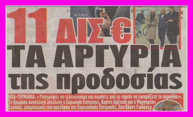 Ο Τσίπρας και η ανώμαλη παρέα του προσπαθεί να τελειώση γρήγορα το μεγάλο κόλπο, διά να προλάβη πριν τις εκλογές να επωφεληθή από όσα μπορεί περισσότερα από τα χρήματα αυτά.ΓΙ’ ΑΥΤΟ ΒΙΑΖΕΤΑΙ ΤΟΣΟ ΠΟΛΥ !!!!