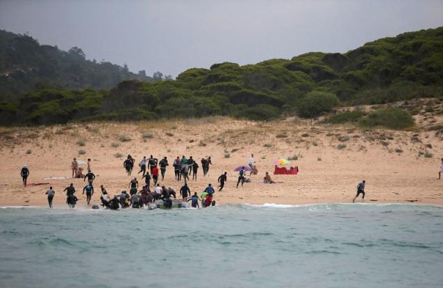 Οι μετανάστες αποβιβάστηκαν σε μια παραλία κοντά στο λιμάνι Ταρίφα αφού διέσχισαν τα στενά του Γιβραλτάρ.