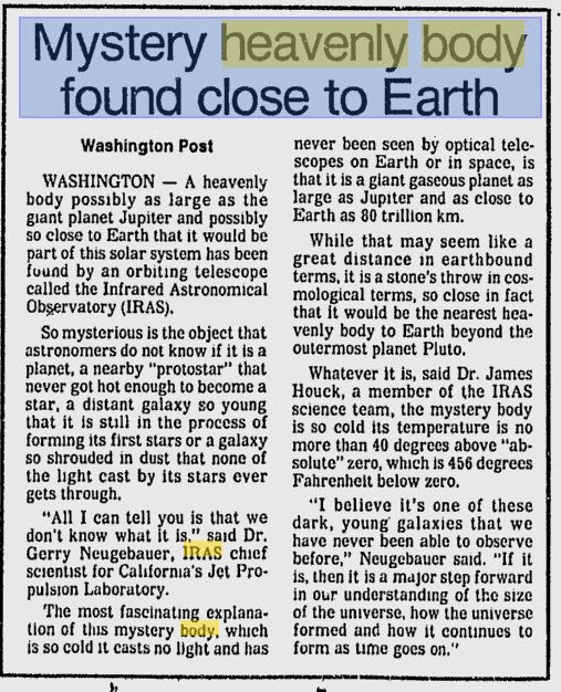 Οι αστρονόμοι δεν σκέφτηκαν απλώς την «ιδέα» αυτού του σκοτεινού αστεριού και των πλανητών του. Αυτό ανακαλύφθηκε το 1983 από το υπέρυθρο τηλεσκόπιο IRAS της NASA, όπως φαίνεται στο άρθρο.
