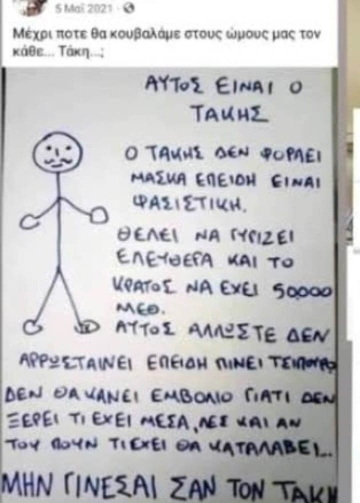 ο Τάκης ήταν όλα αυτά που δεν μπορούσες να είσαι εφόσον εαν είσαι βλαμμένος κάνεις ότι σου πουν οι άλλοι,