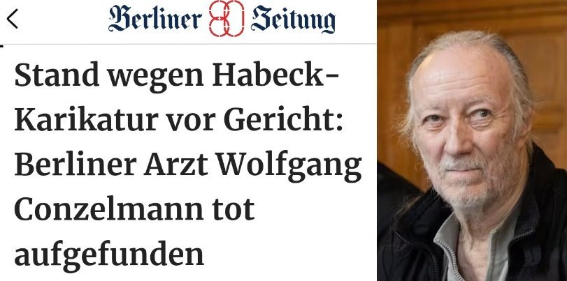 Νωρίτερα αυτή την εβδομάδα, ο γιατρός από το Βερλίνο βρέθηκε στο επίκεντρο μιας αγωγής. Ο Κόνζελμαν κατηγορήθηκε ότι φέρεται να προσέβαλε τον πρώην Ομοσπονδιακό Υπουργό Οικονομικών Ρόμπερτ Χάμπεκ (Συμμαχία 90/Die Grünen). Τον Οκτώβριο του 2022, ο Κόνζελμαν κοινοποίησε μια καρικατούρα του Χάμπεκ μέσω της ομάδας Facebook “Corona Dictatorship”, η οποία θεωρήθηκε ναζιστική προπαγάνδα από τις δικαστικές αρχές. Αν και το σχέδιο δεν περιείχε σβάστικα, παρουσίαζε το λογότυπο των Πρασίνων. Η αρχική λεζάντα («Ένας λαός βοηθάει τον εαυτό του») λέγεται ότι έχει αντικατασταθεί από το σύνθημα «Μείνετε ακίνητοι για την τελική νίκη». Η έρευνα πριν από τρία χρόνια κορυφώθηκε με μια επιδρομή στο ιατρείο, κατά την οποία κατασχέθηκαν πολλά κινητά τηλέφωνα και φορητοί υπολογιστές (σύμφωνα με το BLZ, αυτό είχε ήδη συμβεί το καλοκαίρι του 2022). Σε συνέντευξή του στην εφημερίδα, ο Conzelmann συνέκρινε την έρευνα με αυτές τις «ενέργειες με το μπουρνούζι», αναφερόμενος στην κρατική καταστολή στη Βαυαρία εναντίον ενός άνδρα που είχε δημοσιεύσει το «ηλίθιο» meme του Habeck στο Twitter/X. Στον γενικό ιατρό είχε επιβληθεί πρόστιμο 3.000 ευρώ για αυτό (30 ημερήσιες χρεώσεις των 100 ευρώ ανά άτομο), αλλά αρνήθηκε να το δεχτεί, γεγονός που οδήγησε σε αγωγή.