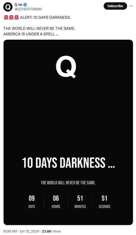 Είναι πιθανό οι περίφημες «τρεις μέρες του σκότους» να ακολουθήσουν το ίδιο σενάριο, μόνο που αυτή τη φορά ο βαρυτικός φακός γύρω από τη μαύρη τρύπα θα απορροφήσει τον Ήλιο πιο πυκνά. Είναι πιθανό να παρατηρήσουμε αυτό το φαινόμενο πολύ σύντομα, αφού οι πάστορες με τέτοιες προφητικές προειδοποιήσεις έχουν γίνει πιο συχνοί, και ο κύριος Q, αν και ο ηλίθιος της πόλης, έκλεισε επίσης ένα περίεργο πράγμα: