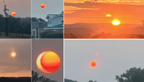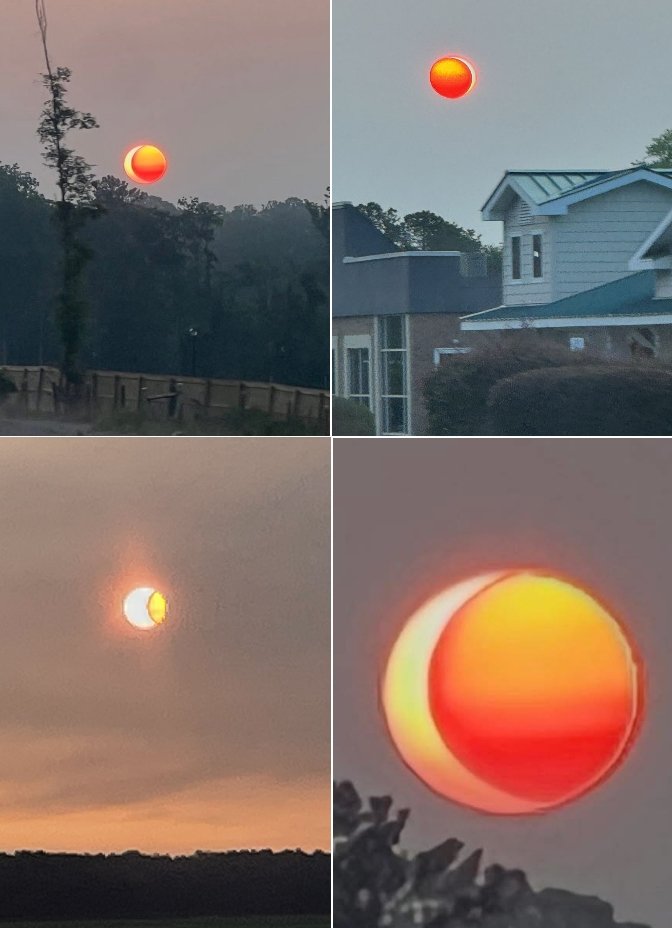 Αυτό το ΒΙΝΤΕΟ τραβήχτηκε από μια κυρία από τη Φλόριντα. Στα πρώτα καρέ δείχνει ένα παράξενο κόκκινο αντικείμενο, παρόμοιο με τον Ήλιο, που έχει σκοτεινιάσει από «σκόνη από τη Σαχάρα». Αλλά στη συνέχεια γυρίζει την κάμερα κατά 90 μοίρες και δείχνει τον ορίζοντα, όπου μόλις έχει κρυφτεί ο Ήλιος και τη σελήνη που εμφανίστηκε αμέσως.