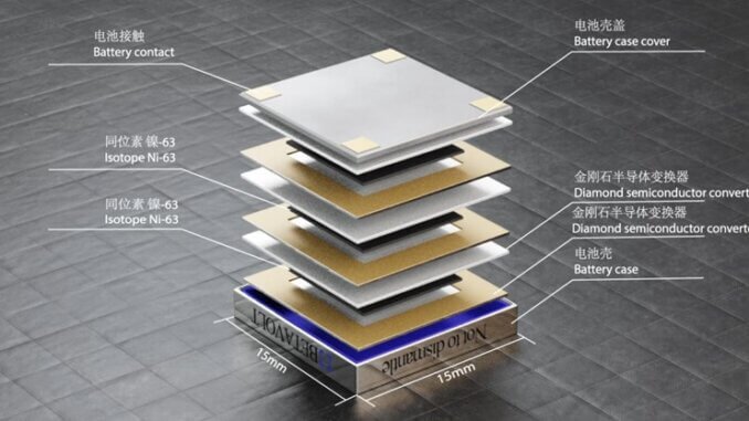 Η μπαταρία έχει διαστάσεις 15 x 15 x 5 χιλιοστά και είναι κατασκευασμένη από τα λεπτότερα στρώματα πυρηνικών ισοτόπων και ημιαγωγών διαμαντιών. Είναι ένας τύπος βήτα-βολταϊκής συσκευής, που σημαίνει ότι λειτουργεί αξιοποιώντας την ενέργεια που απελευθερώνεται από ραδιενεργά ισότοπα, στην περίπτωση αυτή ένα ισότοπο νικελίου, συλλαμβάνοντας και μετατρέποντας ηλεκτρόνια καθώς το υλικό αποσυντίθεται.