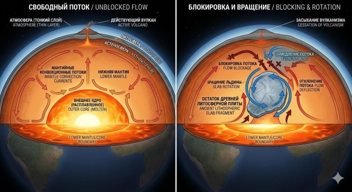 Αυτός ο αρχαίος φλοιός επιπλέει στον μανδύα σαν ένας γιγάντιος πάγος και περιστασιακά περιστρέφεται, επιτρέποντας σε ανοδικά ρεύματα μεταφοράς να περάσουν.