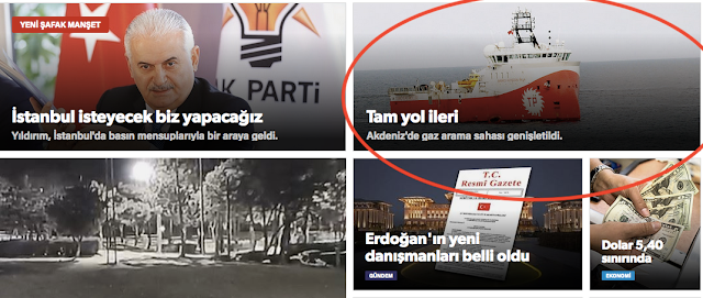 Η Τουρκία έχει επεκτείνει το πεδίο της έρευνας στην Ανατολική Μεσόγειο. Απο το Σαββατοκύριακο με την 39/19 Νο 00 που εκδόθηκε από την Navtex 6 και 7 Ιανουαρίου στο νότιο νησί της Μεγίστης και των ερευνητικών δραστηριοτήτων σε μια ευρεία περιοχή που καλύπτει την ανατολική Ρόδο ανακοινώθηκε πρέπει να εκτελεστεί. (Γράφουν οι Τούρκοι)
