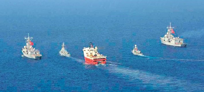 Το Barbaros Hayrettin Πασά σεισμικό πλοίο έρευνα συνοδεία των πλοίων Tanux-1 της τουρκικής υφαλοκρηπίδας με την την πολιτική κατοχής από την Ελλάδα…