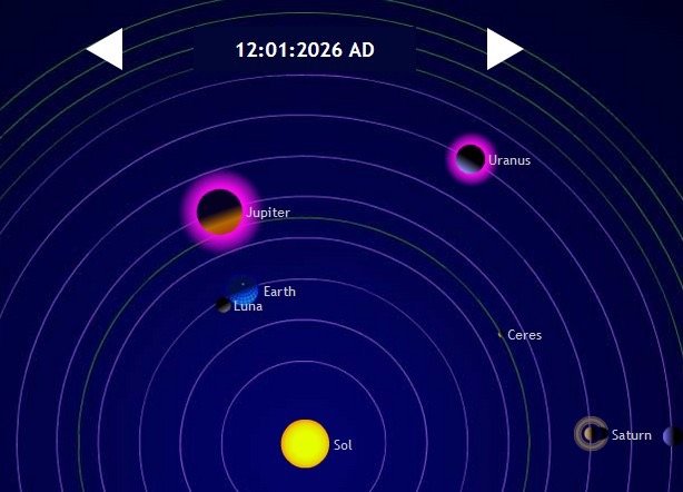 Προς το παρόν, οι θέσεις των πλανητών σε σχέση με τη Γη είναι οι εξής: