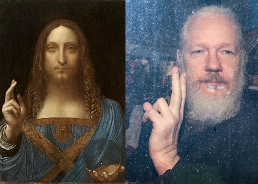Στη συνέχεια παραθέτει μία φωτογραφία του Τζούλιαν Ασάνζ αμέσως μετά τη σύλληψή του καθώς επίσης και τον πίνακα «Ο Σωτήρας του Κόσμου» του Λεονάρντο Ντα Βίντσι που θεωρείται πως εξαφανίστηκε αμέσως μετά τη δημοπρασία του από τον οίκο Christie’s, στις αρχές της χρονιάς. Σύμφωνα με την Τζέσικα, το συγκεκριμένο σύμβολο που έκανε ο Ασάνζ και υπάρχει και στον πίνακα του Ντα Βίντσι, εμφανίζεται πολύ συχνά στις προφητείες του Νοστράδαμου.