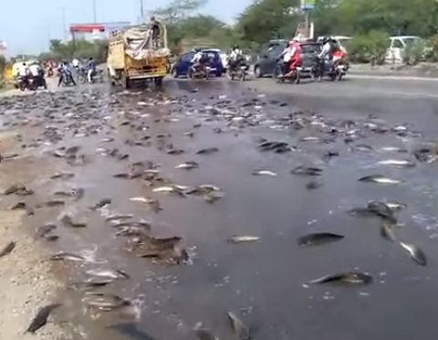 Τώρα, αν αυτό δεν είναι αρκετό, υπάρχουν τρεις ταινίες που έχουν καταγραφεί στην Κίνα και την Ινδία τις τελευταίες ημέρες, που δείχνουν εκατοντάδες ψάρια που καλύπτουν ολόκληρους δρόμους, με αυτοκίνητα και λεωφορεία που προσπαθούν να οδηγούν (αλλά είναι πολύ δύσκολο όταν τόσοι πολλοί το έδαφος).