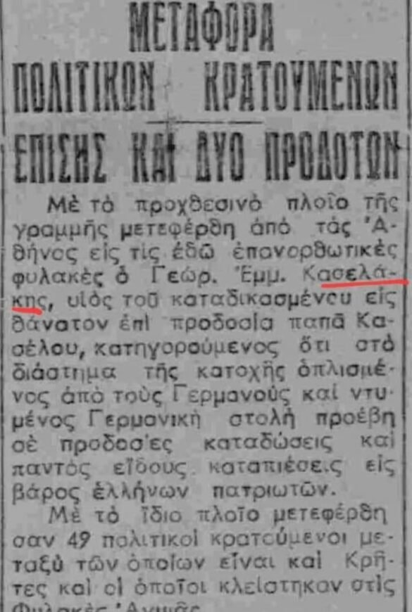Ο παππούς του κου Στέφανου Κασσελάκη (ή Κασελάκη) μεταξύ και άλλων προδοτών της Πατρίδος μας πολιτικών που βρέθηκαν στην πολιτική διακυβέρνηση του έρημου τόπου αυτού!
