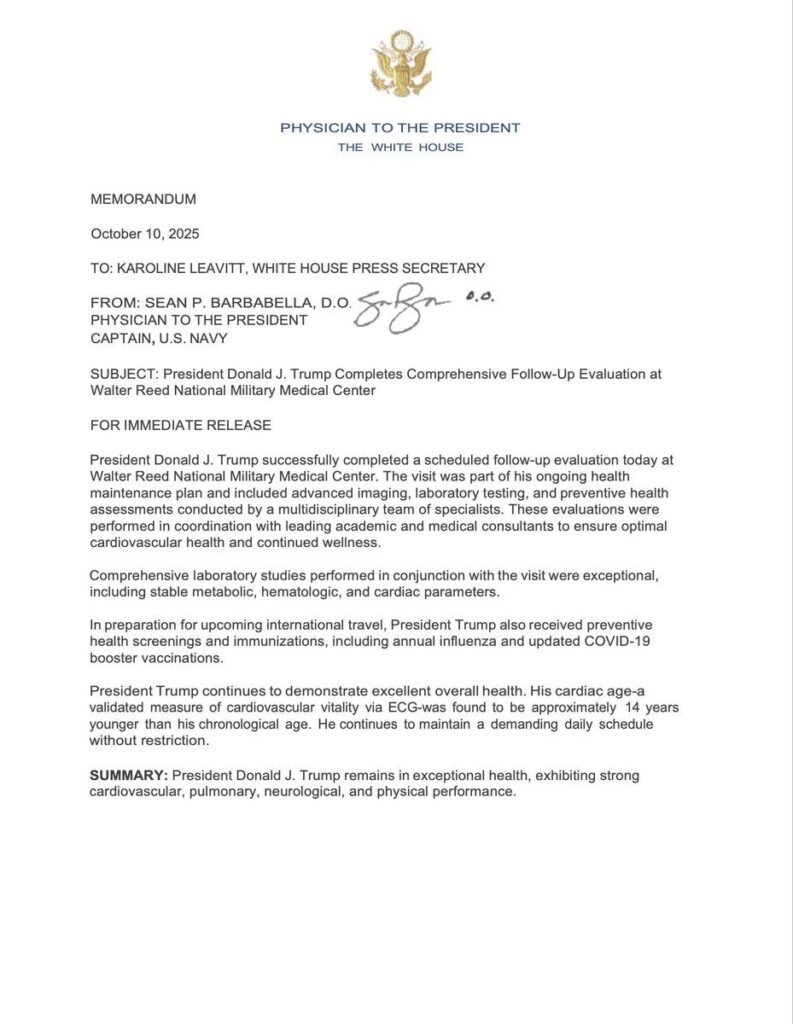 President Donald J. Trump Completes Comprehensive Follow-Up Evaluation at Walter Reed National Military Medical Center pic.twitter.com/OuB4whYm6K