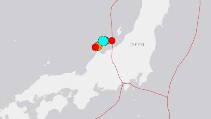Η Μετεωρολογική Υπηρεσία της Ιαπωνίας ανέφερε μια σειρά από 21 σεισμούς μεγέθους 4,0 ή μεγαλύτερου που έπληξαν την κεντρική περιοχή της χώρας σε λίγο περισσότερο από 90 λεπτά.