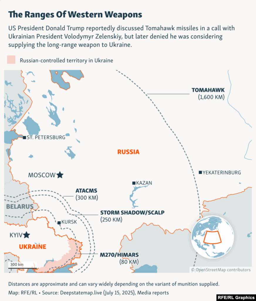 Την περασμένη εβδομάδα, ο Ρώσος πρόεδρος Πούτιν δήλωσε ότι δεν περίμενε από τον Πρόεδρο Τραμπ να εγκρίνει το αίτημα του Ζελένσκι για πυραύλους Tomahawk για χρήση εναντίον της χώρας του. Ο Πούτιν υπέδειξε ότι εάν ο Τραμπ εγκρίνει το αίτημα, αυτό θα ήταν το τελευταίο καρφί στο φέρετρο των αμερικανορωσικών σχέσεων. Αυτές οι σχέσεις θα «καταστραφούν», όπως ανέφερε το Reuters στις 5 Οκτωβρίου.