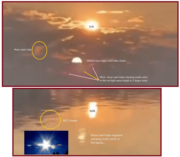 Εάν παίζετε με τις φασματικές γραμμές των αντανακλάσεων στο νερό, συγκρίνετε το με άλλες παρόμοιες φωτογραφίες και βίντεο, υπάρχουν τουλάχιστον τέσσερα μεγάλα αντικείμενα κοντά στον Ήλιο – ένα αστέρι ή ένας πολύ μεγάλος πλανήτης που αντανακλάται σαν αστέρι, καθώς και πολλά φεγγάρια που περιβάλλονται από δομές δίνης. Ως εκ τούτου, δεν προκαλεί έκπληξη το γεγονός ότι ο Ήλιος αντιδρά σε τέτοια εγγύτητα και οι αστροναύτες πρέπει να απενεργοποιήσουν τις υπηρεσίες έτσι ώστε οι κάτοικοι του πάρκου να μην συσπώνται εκ των προτέρων.
