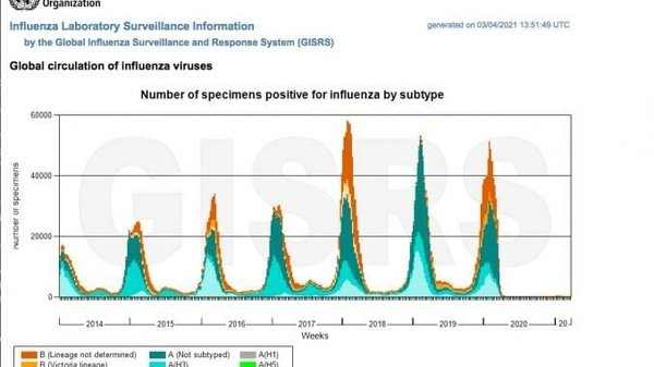 Στην εικόνα βλέπετε ξεκάθαρα τους κύκλους της γρίπης ή ινφλουένζας από το ετος 2013 μέχρι το 2020!! Μετά εξαφανίστηκε από την Γαία για να εμφανιστεί σε άλλο πλανήτη και αστρικό σύστημα…οι ιατροί μας γνωρίζουν τωρα ότι την κολλάνε μόνο στην Ανδρομέδα…εκεί πιστεύουν οι ιατροί μας ότι η Πανδημία της γρίπης έχει αποδεκατίσει το 1/3 των Ανδρομέδιων…