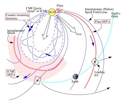 Οι ηλιακές κηλίδες που βρίσκονται κοντά στη δυτική άκρη του Ήλιου είναι μαγνητικά κλειδωμένες στη Γη. Το μαγνητικό πεδίο του Ήλιου σπειροειδώς σχηματίζει σαν ψεκαστήρας κήπου – αυτό το σχήμα είναι γνωστό ως «σπείρα Parker».