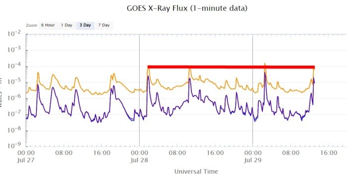 Η συνδυασμένη επίδραση αυτών των CME (ένας τριπλός κανίβαλος ακολουθούμενος από έναν ή δύο στραγάλους) θα μπορούσε να προκαλέσει ισχυρές γεωμαγνητικές καταιγίδες G3 στις 30-31 Ιουλίου. Εάν συμβεί μια τέτοια καταιγίδα, τα σέλας θα πρέπει να είναι ορατά σε μεσαία γεωγραφικά πλάτη σε όλη την Ευρώπη και τις ΗΠΑ.