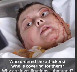 Στο μήνυμα της από το κρεβάτι του πόνου καταγγέλει »υπήρξαν 40 επιθέσεις την τελευταία χρονιά. Ποιός έδωσε εντολή στους επιτιθέμενους; Ποιός καλύπτεται από αυτούς: Γιατί σαμποταρίστηκαν οι έρευνες; Γιατί παροτρύνουμε το λαό να είναι κοινωνικά ενεργός αλλά δεν μπορούμε να τον προστατεύσουμε;