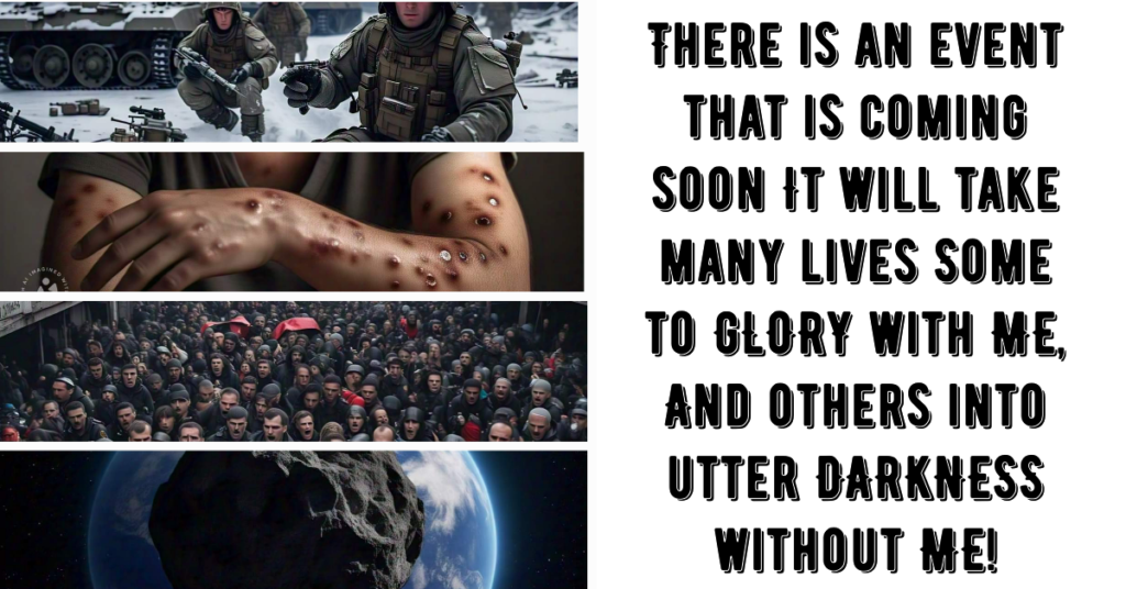 4ο ΟΡΑΜΑ: Στην πραγματικότητα, δεν ήταν πια ένα όραμα, αλλά μια φωνή που άκουσα απο το πνεύμα. Η φωνή είπε: μια φυσική καταστροφή ΘΑ χτυπήσει. Αλλά ποια φυσική καταστροφή μπορεί να «χτυπήσει»; Το μόνο που μπορούσα να σκεφτώ ήταν ένας μεγάλος μετεωρίτης.