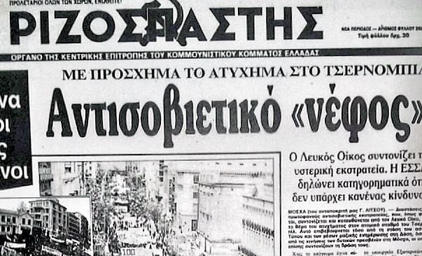 Όταν έγινε το φοβερό πυρηνικό ατύχημα στο Τσερνόμπιλ, οι σοβιετικές αρχές το έκρυψαν από τους υπηκόους τους κι από τον κόσμο ολόκληρο. Ήταν η εποχή που ο σύντροφος Καρτερός (τότε διευθυντής του «Ριζοσπάστη» και νυν σύμβουλος επικοινωνίας του mister Tsipra) μιλούσε για «αντισοβιετικό νέφος» προπαγάνδας και οι κνίτες έτρωγαν δημοσίως… μαρούλια, για να δείξουν ότι δεν προκλήθηκε καμμιά μόλυνση!