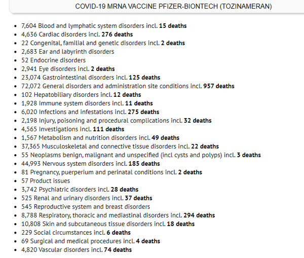 Βρήκαμε και τους νεκρούς από τους εμβολιασμούς με την κοκτέλα της Pfizer. Τα νούμερα των νεκρών είναι τα επίσημα νούμερα που δίνει η ΕΕ αλλά ποτέ δεν θα τα δείξουν οι πληρωμένοι παπαγάλοι των ΜΜΕ.